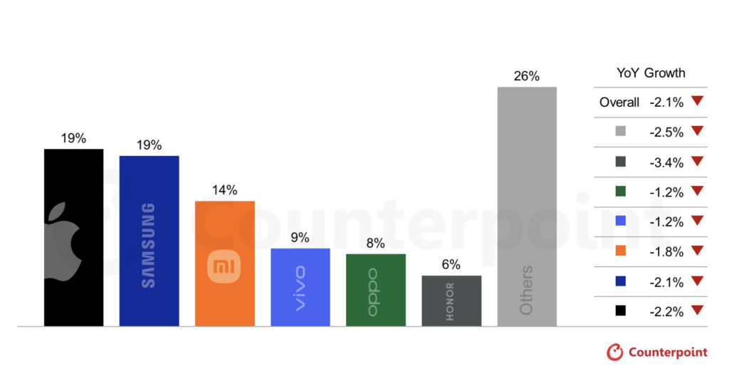 出典: カウンターポイントリサーチ社 Counterpoint Research Global Smartphone Shipment Tracker and Forecast