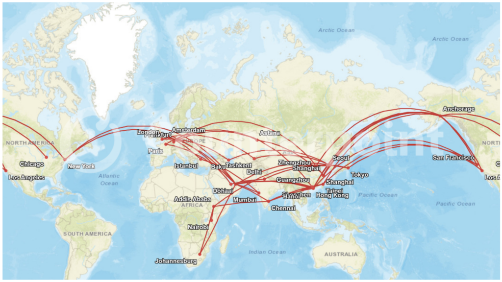 デバイス輸送に使われる主要な航空貨物輸送ルート