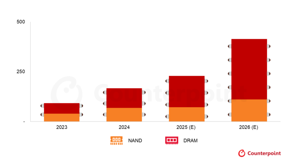 カウンターポイントリサーチ (英文名: Counterpoint Research 以下、カウンターポイントリサーチ社)は、2025年第4四半期のメモリ価格は第3四半期比で50%上昇し、2025年のメモリ市場の売上高は初となる2,000億ドルを超える見通しとなり、来年は倍増し4,000億ドルに達するとみられるという市場予測を含む「Memory Tracker」による最新調査を発表致しました。